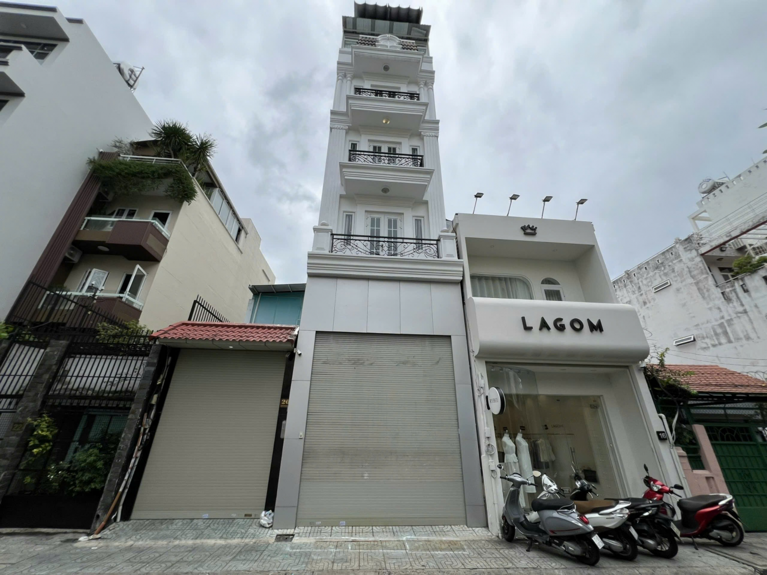Kết cấu 1 hầm, 5 lầu, sân thượng, thang máy.