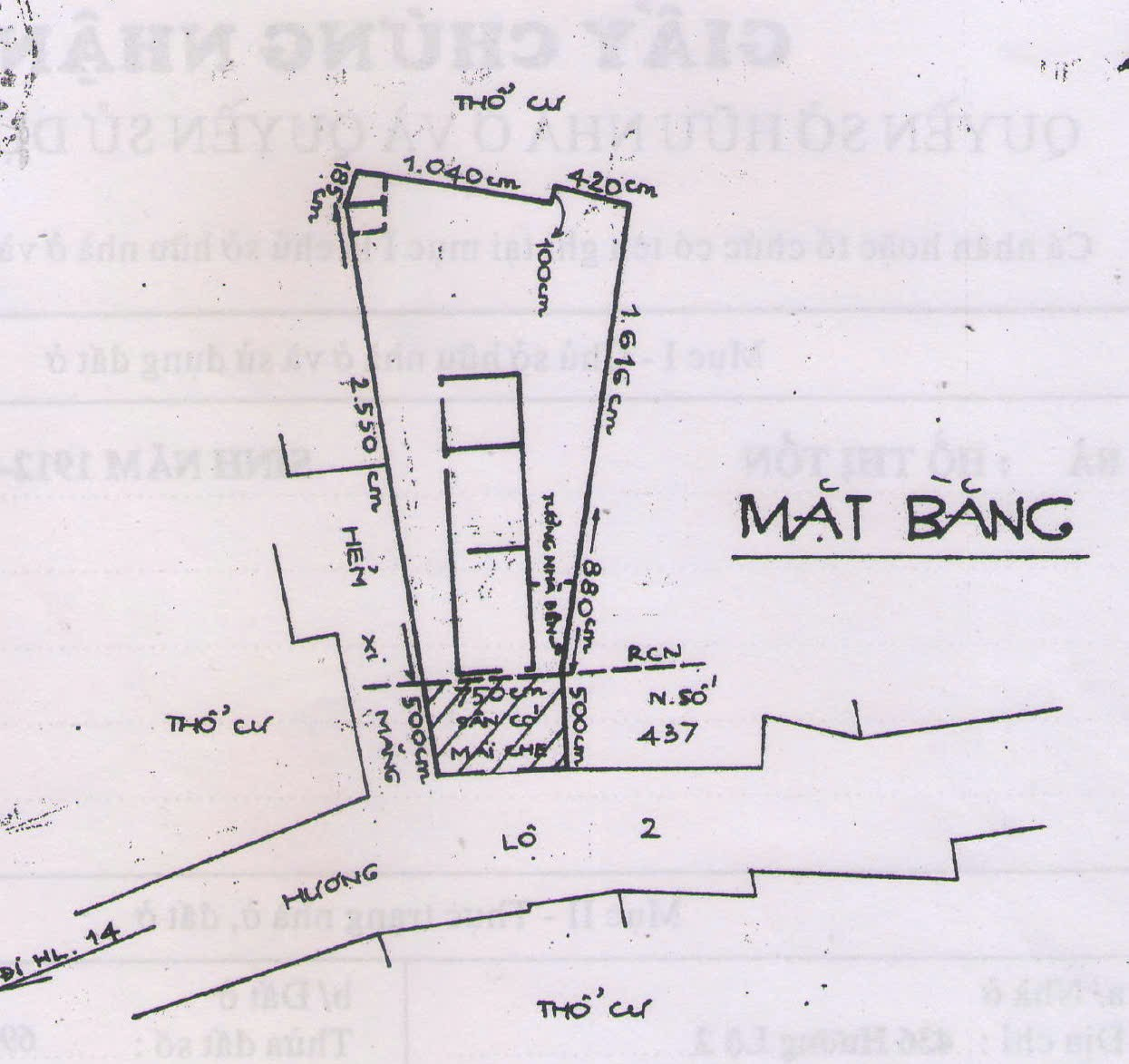 - Diện tích sử dụng: 291m2, Thổ cư Nở hậu - hai mặt tiền